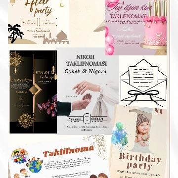 Siz uchun chiroyli va sifatli taklifnoma dizayni tayyorlab beraman.
