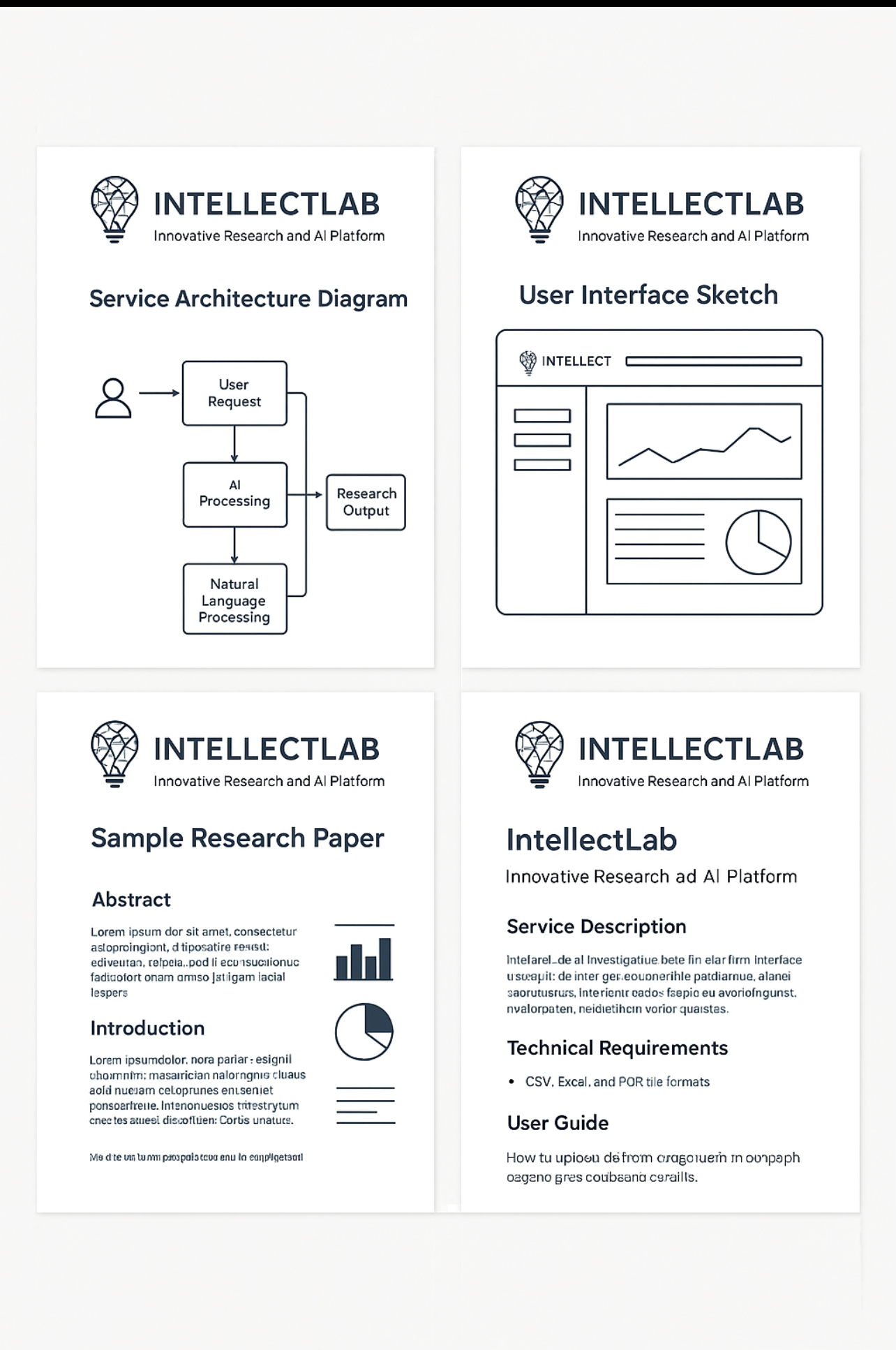 “IntellectLab” – bu zamonaviy ilm-fan va sun’iy intellekt texnologiyalari integratsiyasi orqali yaratilgan noyob platforma. U ilmiy tadqiqotlar, ma’lumot tahlili, ma’ruza va prezentatsiyalar tayyorlash, shuningdek, ijodiy va innovatsion yechimlarni ishlab chiqish jarayonlarini sezilarli darajada tezlashtiradi.