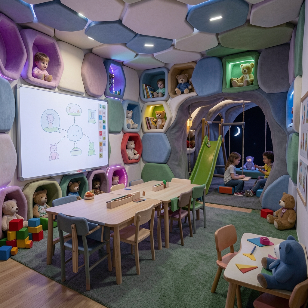 - Maxsus logotip va grafik elementlar bilan ichki makon dizayni