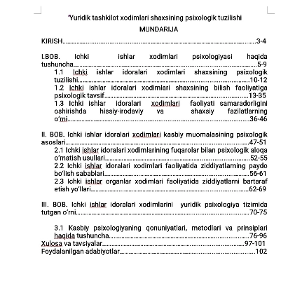 Barcha oliy ta’lim muassasalaridagi barcha yònalishlar uchun diplom ishi tayorlab berish
