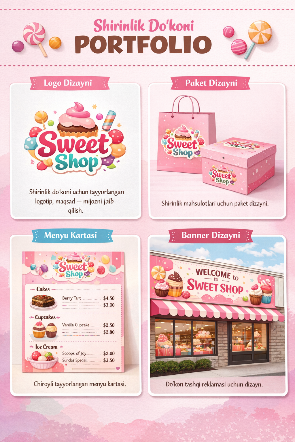 Istagan dokonlarga bannerlar ajoyib koʻrinishda menyular logotiplar yasab beraman