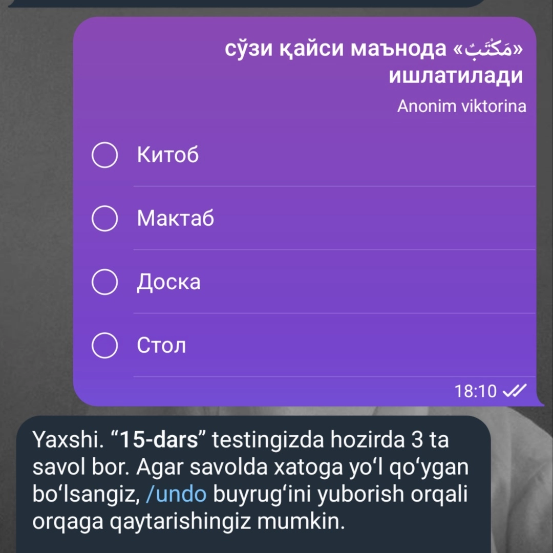 50tagacha bo'lgan test uchun 10 000 to'lov qilinadi