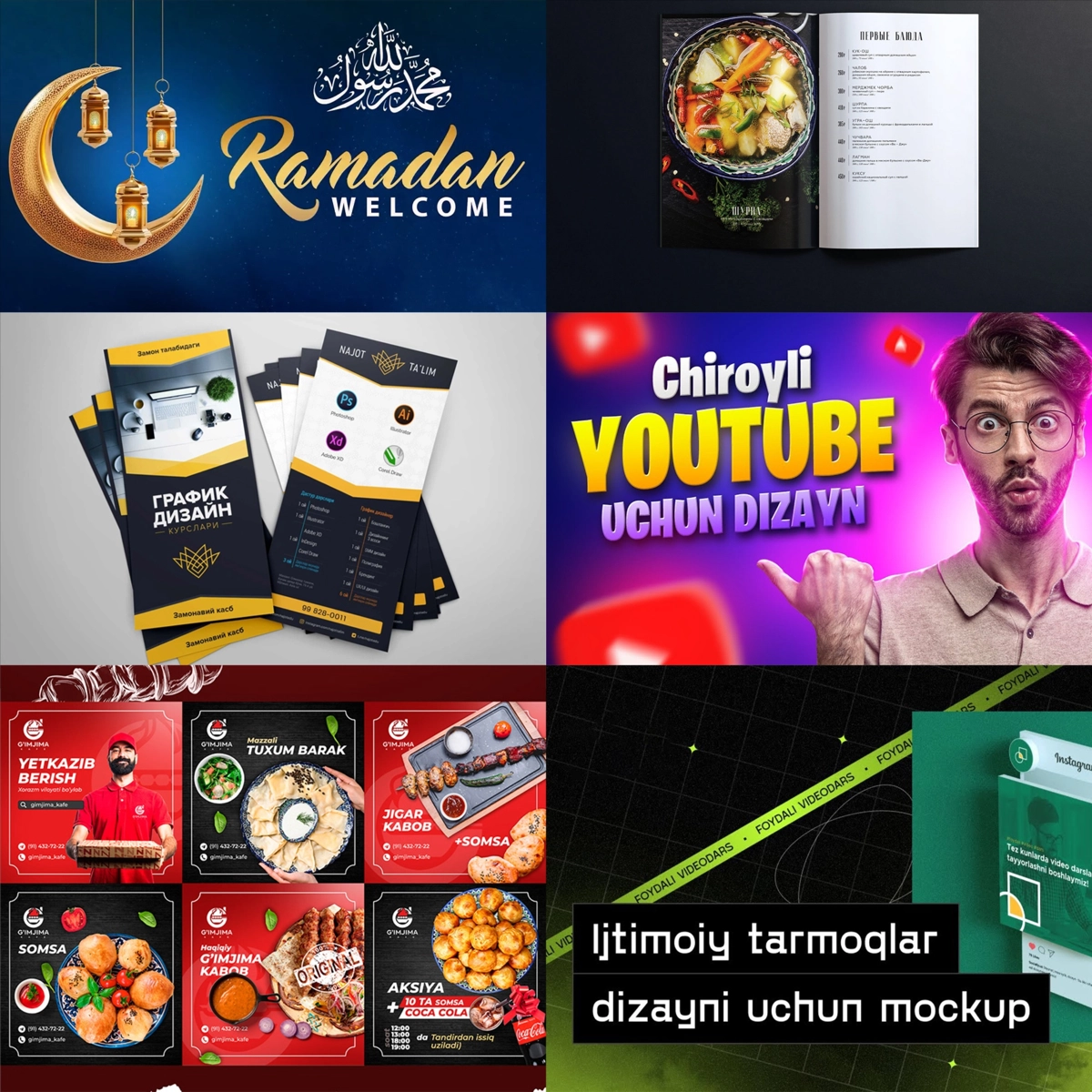 MENU -uchun dizayn IJTIMOYI TARMOQLAR-uchun dizayn RAMAZON -uchun dizayn FLAER -uchun dizayn REKLAMAR-uchun dizayn