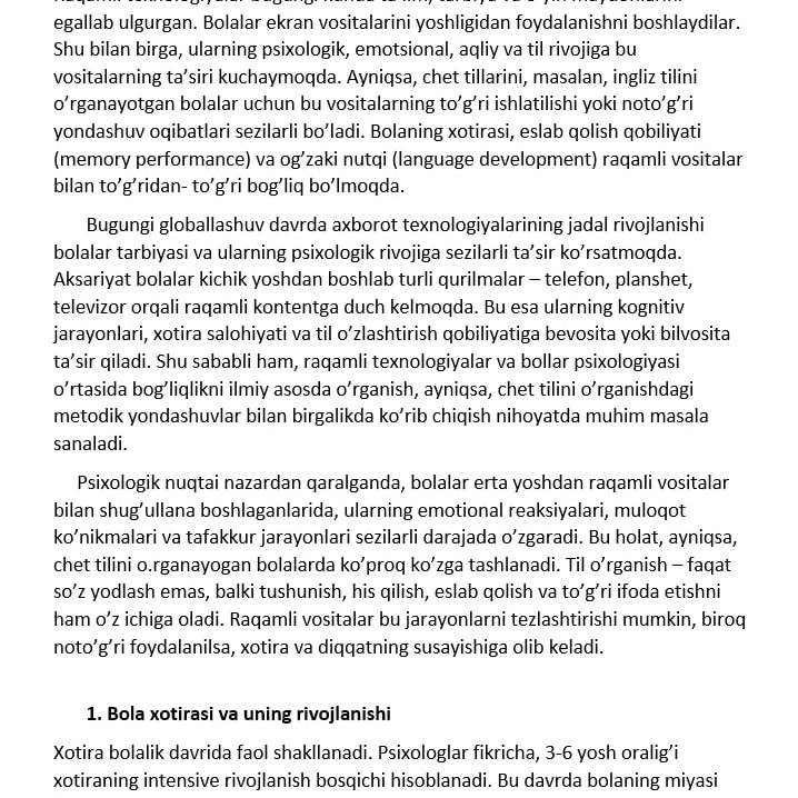 Turli fanlardan mustaqil ishlarni tayyorlash xizmati. Har bir ish mavzuga mos, tartibli va ilmiy-uslubiy talablarga rioya qilingan holda yoziladi. Original yondashuv va sifatli mazmun kafolatlanadi.