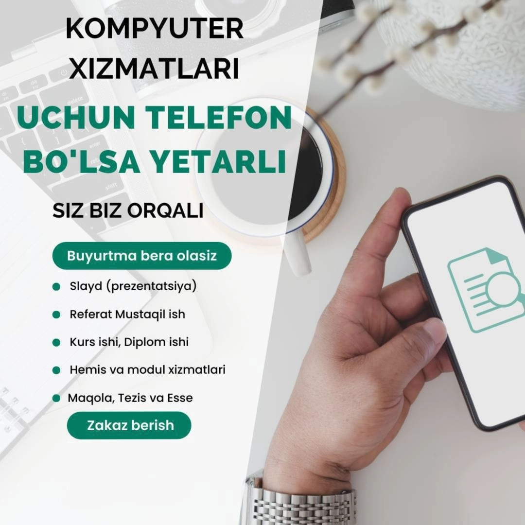 Sizga mukammal tarzda mustaqil ishlarni tayyorlab berman.