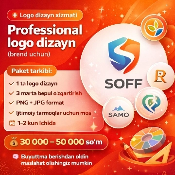 5. Logotipni faqat PNG (shaffof fon) va JPG formatda taqdim qilaman.