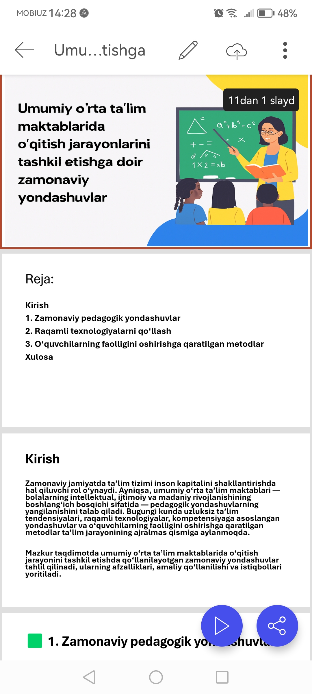 🛠️ Ishlatadigan vositalar: PowerPoint | Google Slides | Canva Pro | Prezi