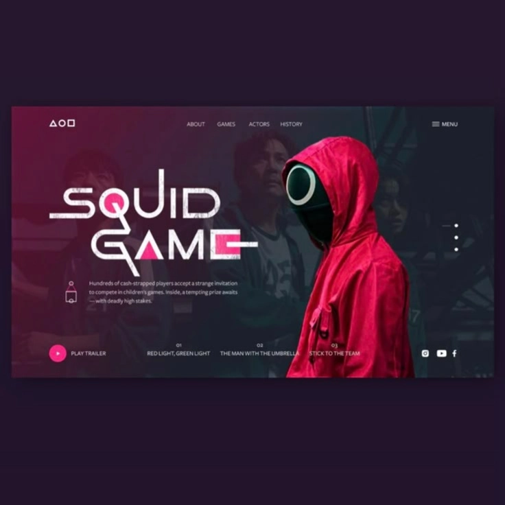 Navigatsiya menyusi (About, Games, Actors, History).