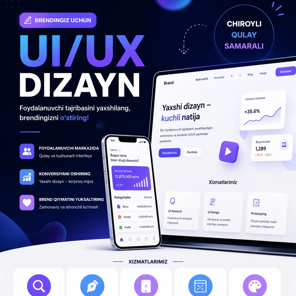 Profissianal darajada Web dizayn qilib berish.