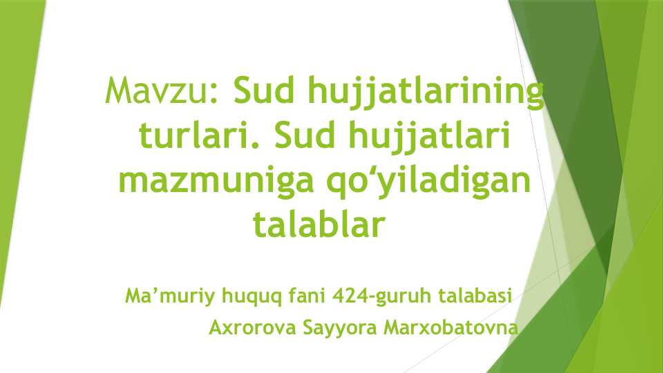 TaqdimotlarKurs ishlariMustaqil ishlarDiplom ishlariBlankalarBiznes rejalarElektron kitoblarStatistikaMaqolaPlakatlarLoyihalarIjodiy IshlarAmaliy ishlarDasturlash tillariNamunaviy hujjatlarO'quv qo'llanmalarTarqatma materiallarDars ishlanmalarTestlarReferatlarIxtiro patentiDissertatsiya ishlariLabaratoriya Ishlari