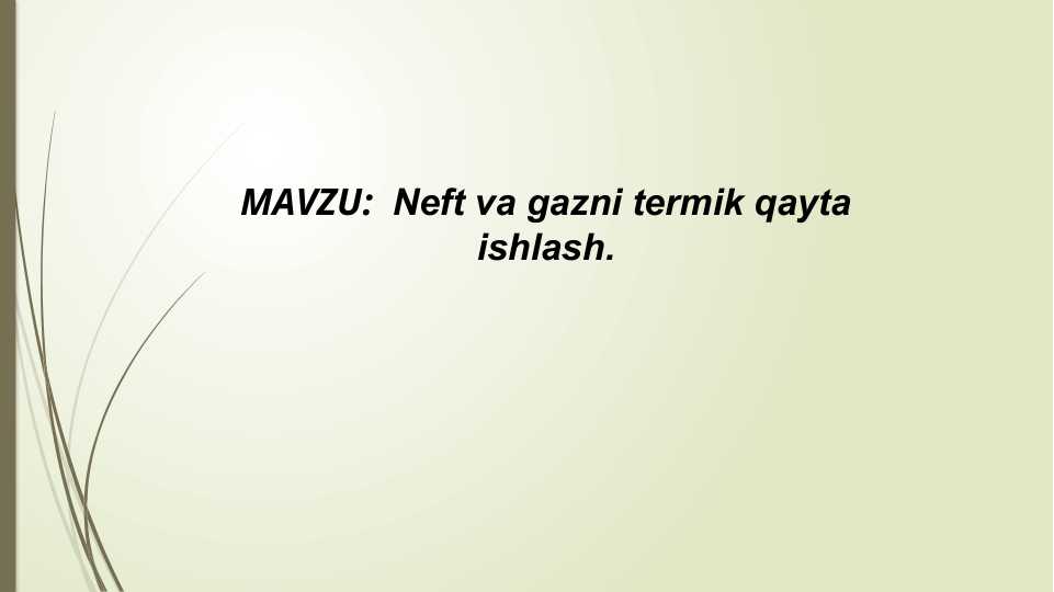 Neft mahsulotlarini qayta ishlash jarayonini avtomatlashtirish. Neftni birlamchi qayta ishlash