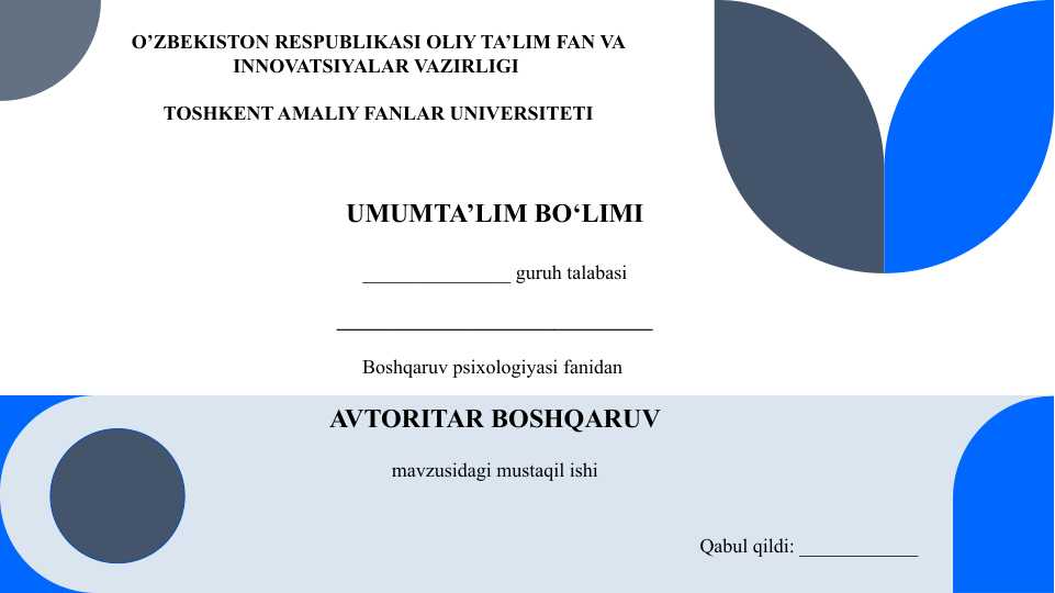 TaqdimotlarKurs ishlariMustaqil ishlarDiplom ishlariBlankalarBiznes rejalarElektron kitoblarStatistikaMaqolaPlakatlarLoyihalarIjodiy IshlarAmaliy ishlarDasturlash tillariNamunaviy hujjatlarO'quv qo'llanmalarTarqatma materiallarDars ishlanmalarTestlarReferatlarIxtiro patentiDissertatsiya ishlariLabaratoriya Ishlari