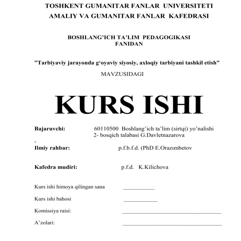 Kurs ishi to'liq tayyorlab berish, kurs ishida muammolar bo'lsa bartaraf etish.