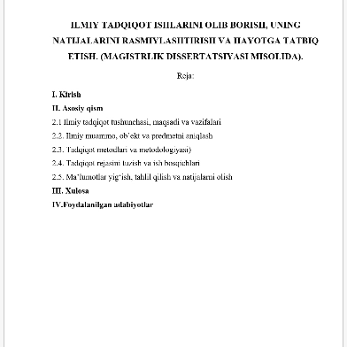 ✅ Reja asosida tuzilgan: kirish, asosiy qism, xulosa, foydalanilgan adabiyotlar