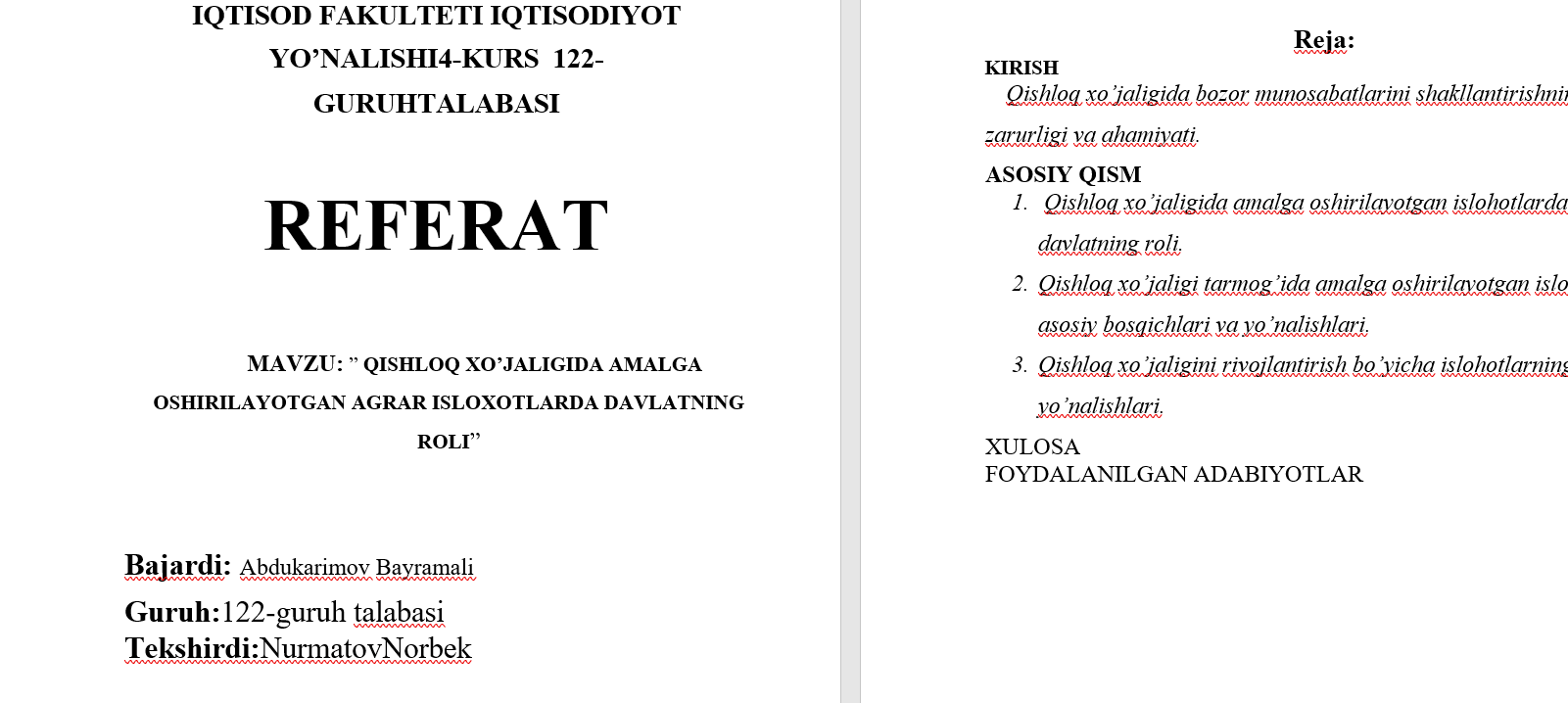 mavzular doirasida refeatlar tayyorlab beramiz bu borada 3 yillik tajriba egamiz.
