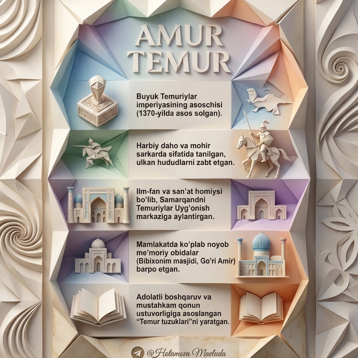 MEN HOTAMOVA MAVLUDA 4YILDAN BUYON MUSTAQIL ISHAR, TAQDIMOTLAR SHABLONLAR VA QISQA KANTENTLAR TAYYORLASH BILAN SHUG'ULLANAMAN. MEN BU ISHLARNI ASOSAN AI XIZMATLARIDAN FOYDALANAMAN POVER POIT DASTURIDA VA AI XIZMATIDAN FOYDALANIB TAQDIMOTLAR TAYYORLAYMAN . MEN BU ISHLARNI TEZ VA SIFATLI TAYYORLAY OLAMAN.